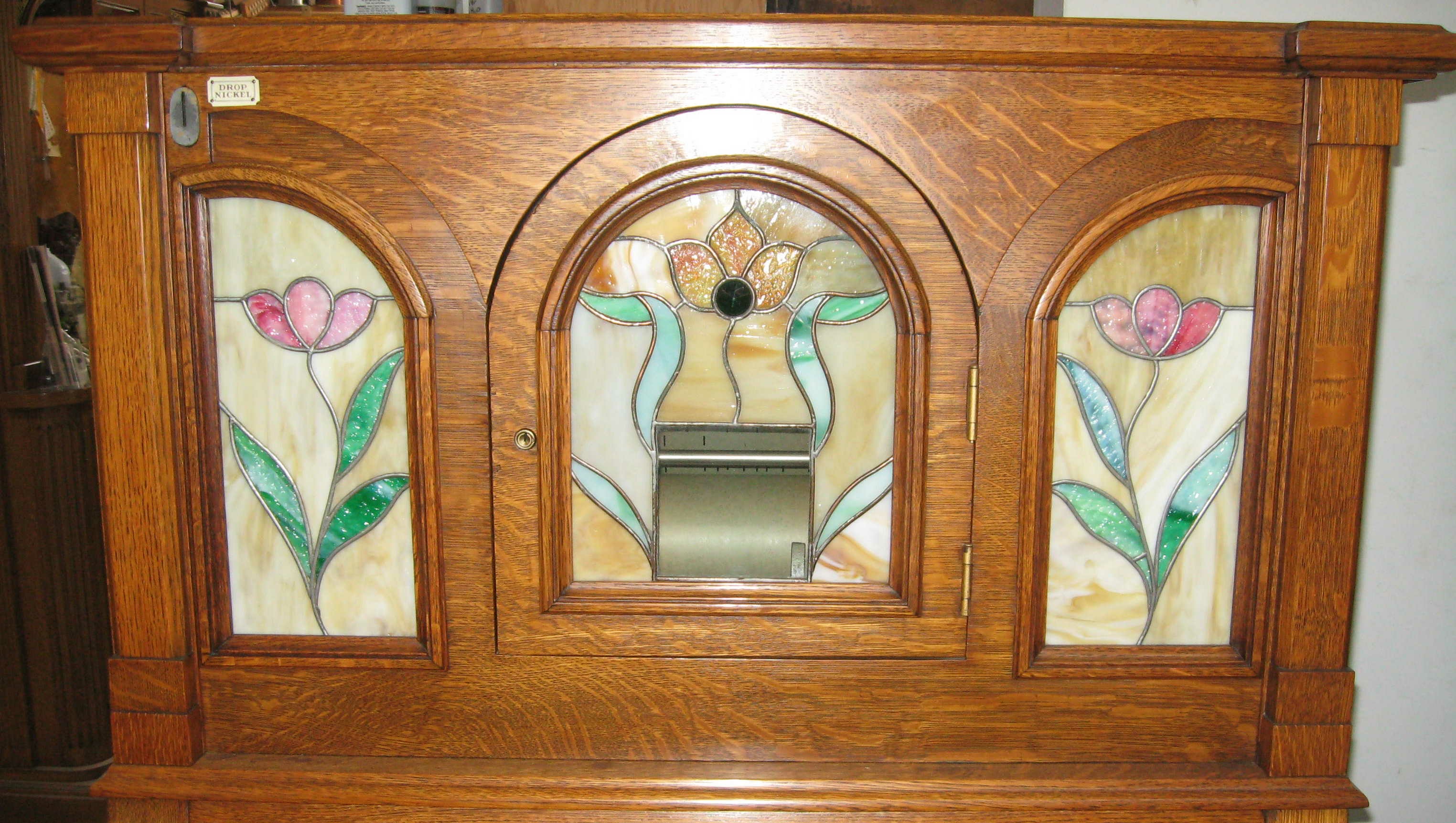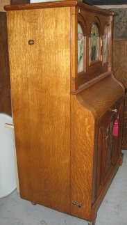 The instrument features a 44 note piano with mandolin attachment accompanied by 21 violin pipes, and 21 flute pipes.