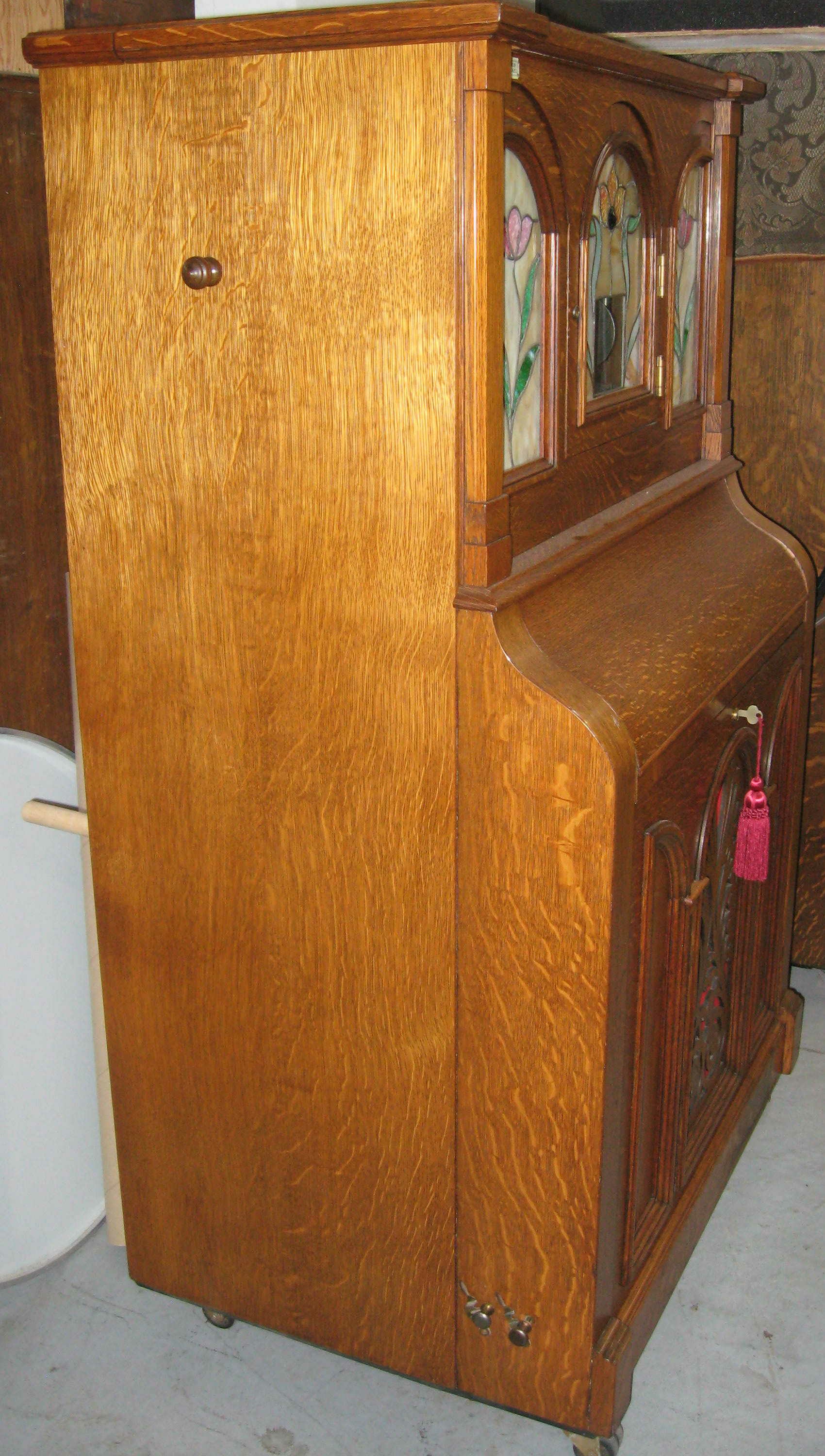 Cabinet is approximately 36 inches wide by 25 inches deep by 60 inches tall. Purchase includes three 10 tune Pianino rolls. Please contact us for additional information.